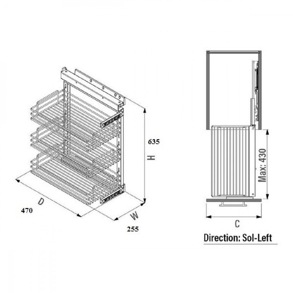 Карго Starax 300 3 полиці повного висування на тандемах Blum хром ліве (праве кріп.) S-2205-C