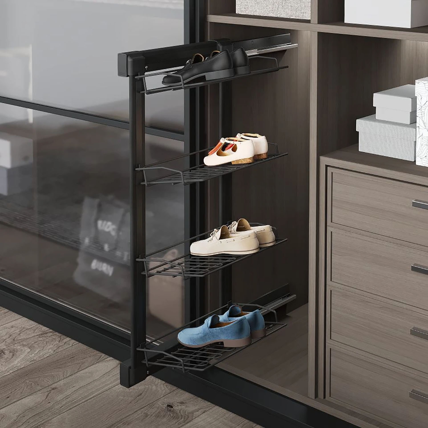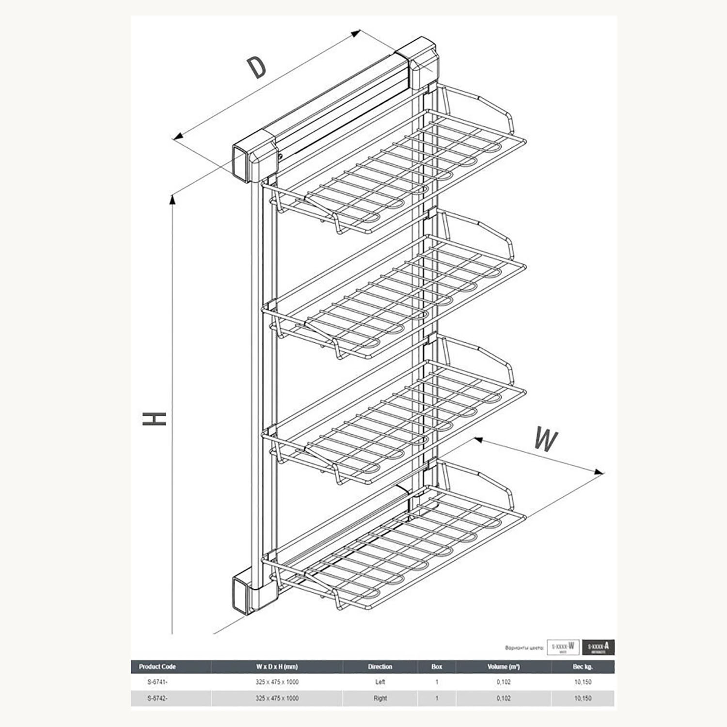 Полиця для взуття Starax 4-рівнева на тандемах ліва 325x475x1000 антрацит S-6741-A