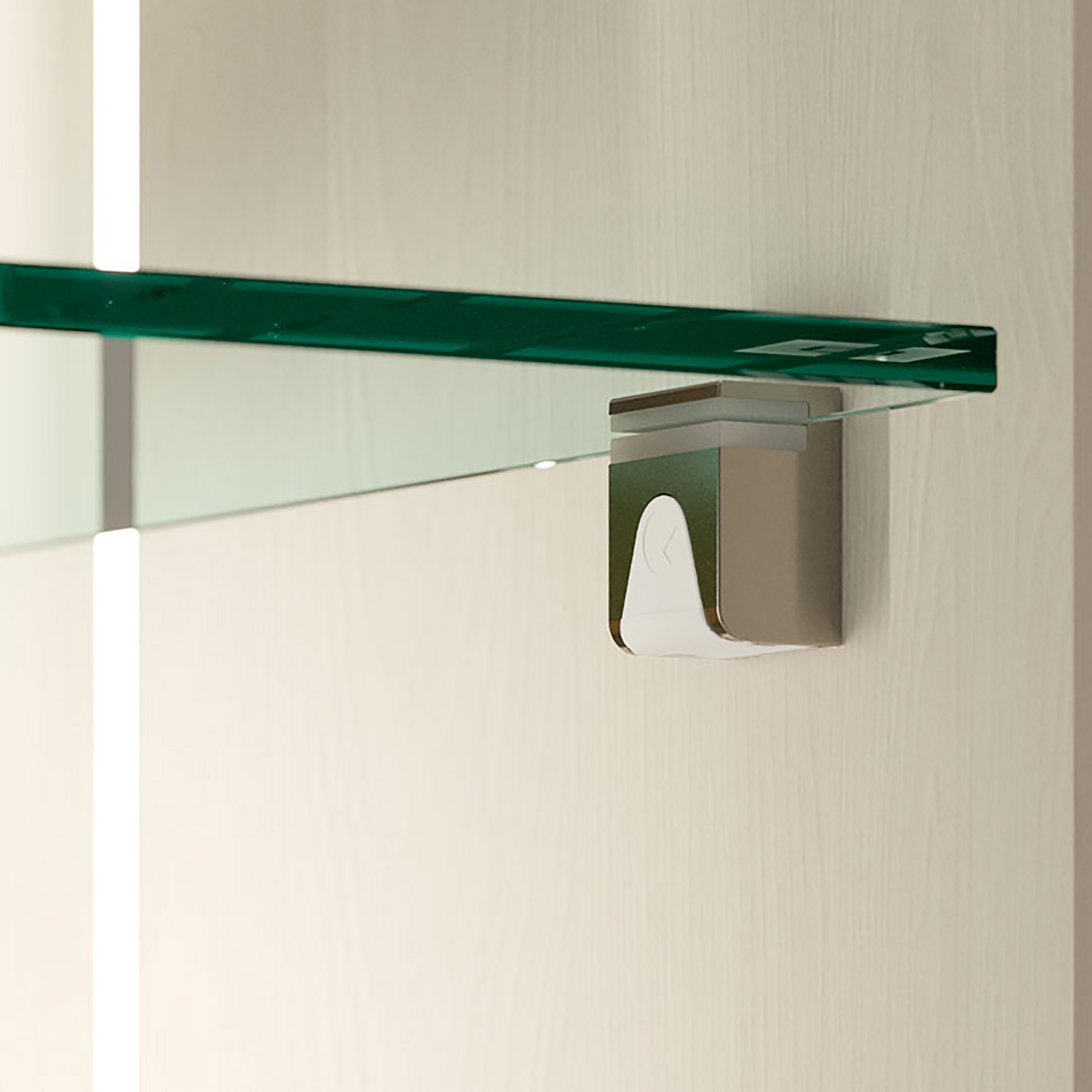 Є м'які прогумовані прокладки, які забезпечують максимальну безпеку скляній полиці. Можливість установки полиці товщиною 9 мм без використання силіконової прокладки. Варіант для саморізів можна використовувати для полиць в нішах.