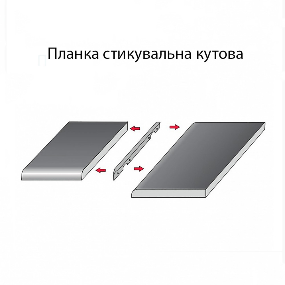 Призначеним для з'єднання стільниць з ЛДСП під кутом 90 *. Рекомендується змазати силіконовим герметиком. Планка кріпиться саморізами 3х20 мм, а стільниці стягуються стяжками.
