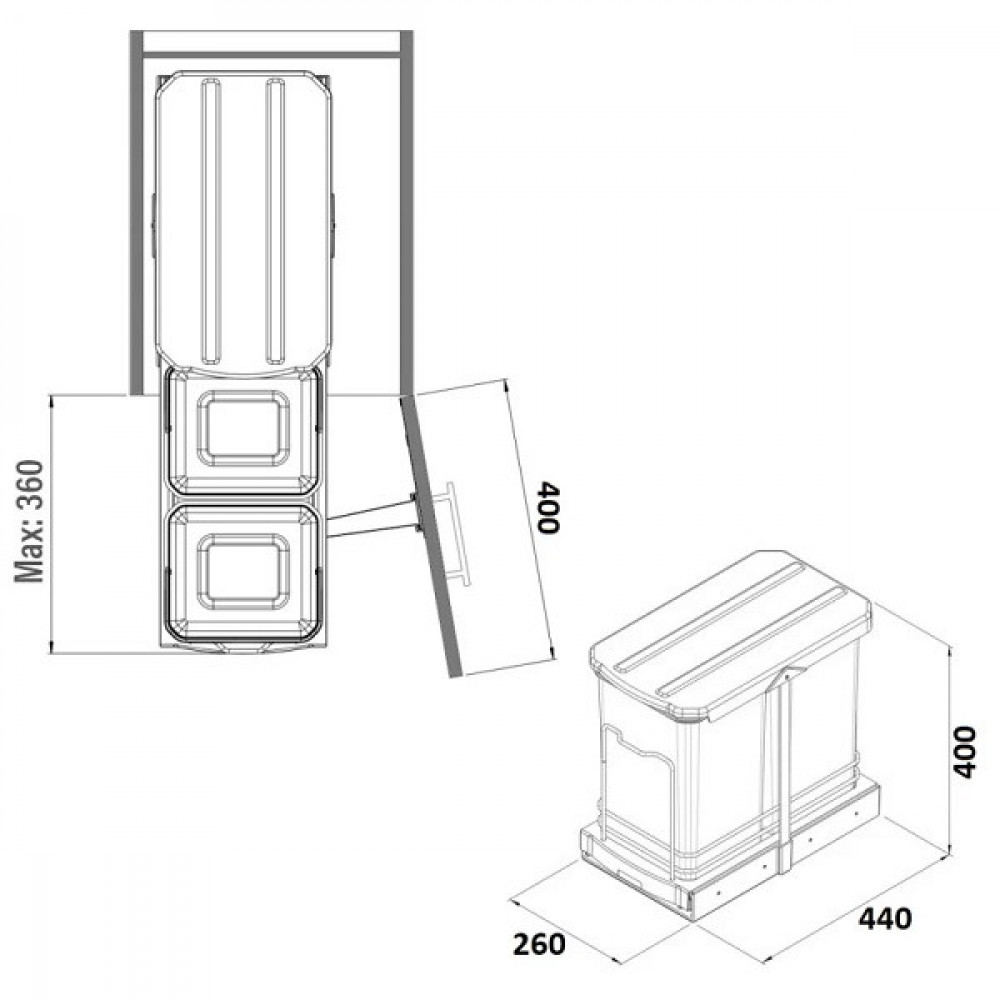 Характеристики: • Монтаж до правої або лівої панелі модуля • При відкритті дверей модуля, автоматично відкривається кришка сортера • Зручно монтувати як в прямі так і кутові модуля