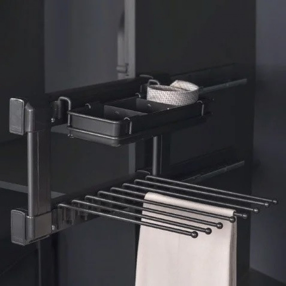 Брючница Starax с корзиной на направляющей L левая (360х475х220) антрацит S-6735-A