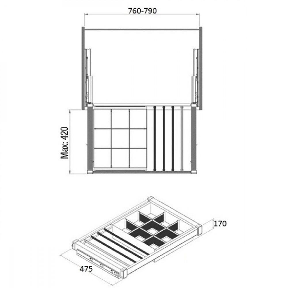 Брючница Starax с ячейками бокового крепления в 800 секцию (760-790х475х170) антрацит S-6705-A