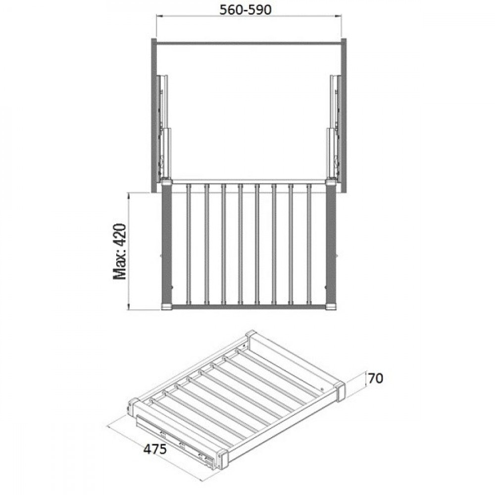 Брючница выдвижная Starax на тандем напр. в 600 секцию (560-590×475×170) антрацит S-6707-A