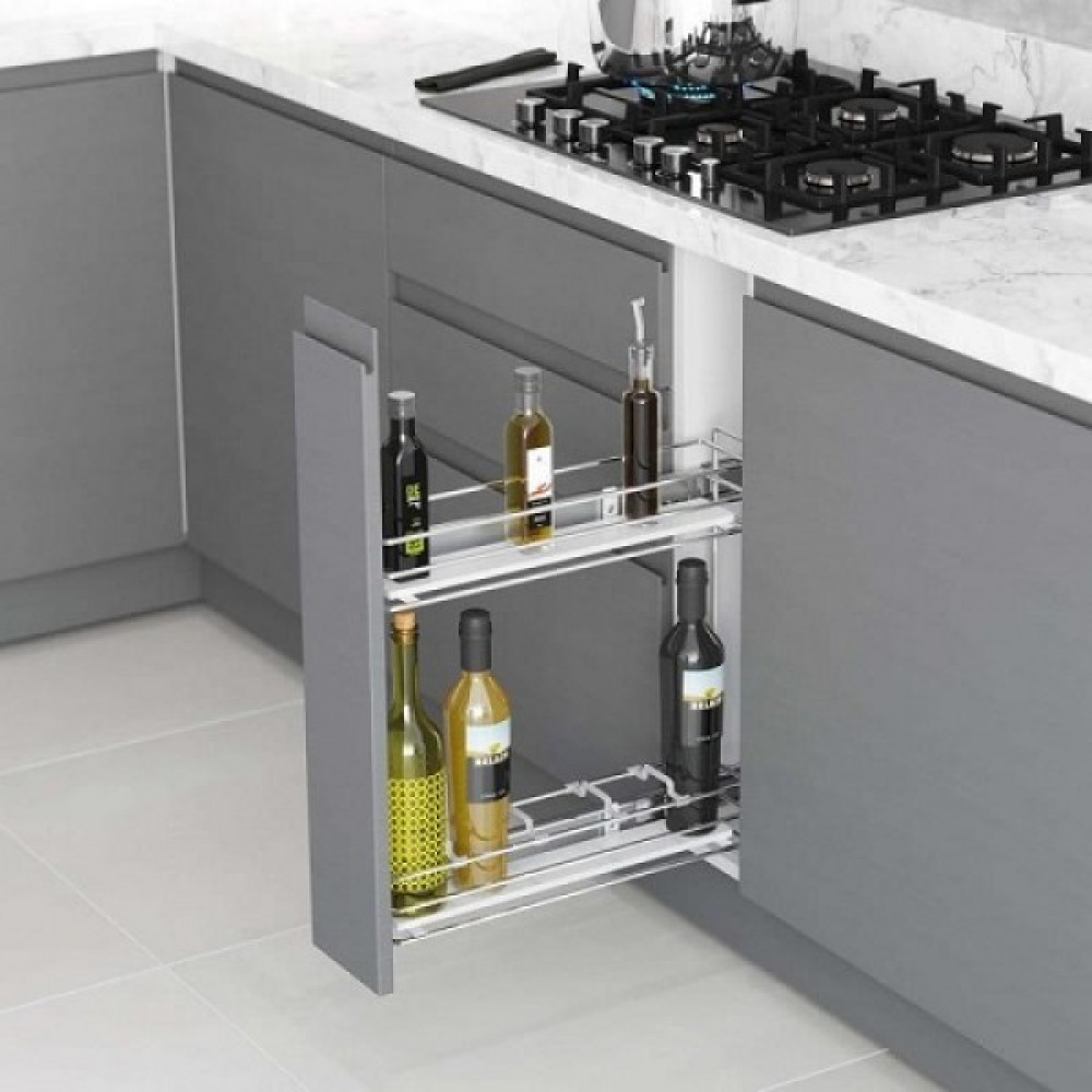 Представляет собой двухуровневую корзину, которая с помощью тандем Blum направляющих крепится к боковой стенке мебели. Карго очень удобно для хранения кухонных принадлежностей которые не помещаются в обычный ящик.