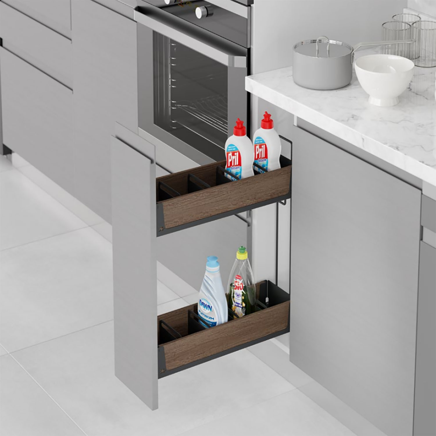 Карго Starax 200 2 полки полного выдвижения на тандемах Blum антрацит-дерево правое S-2442-UW-A