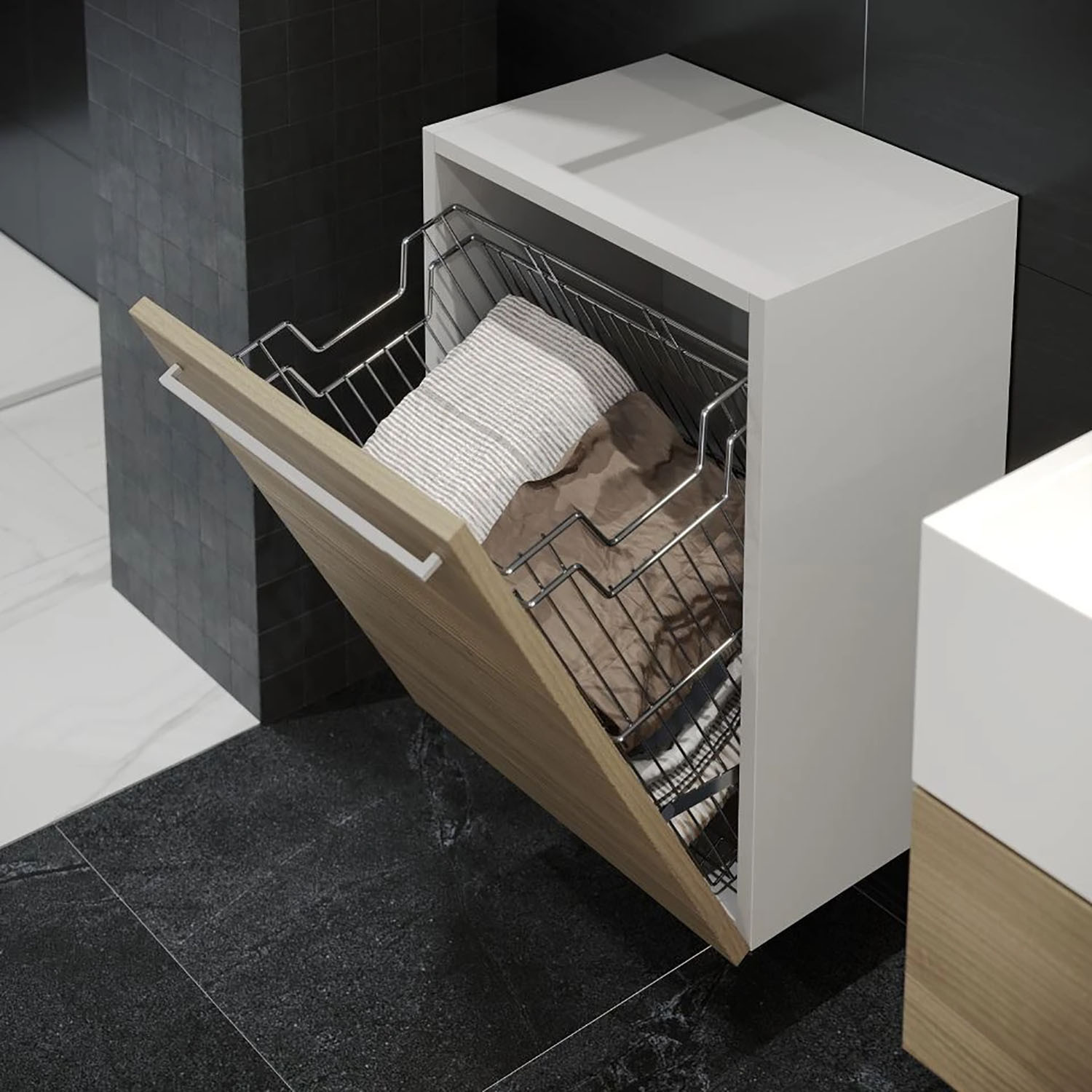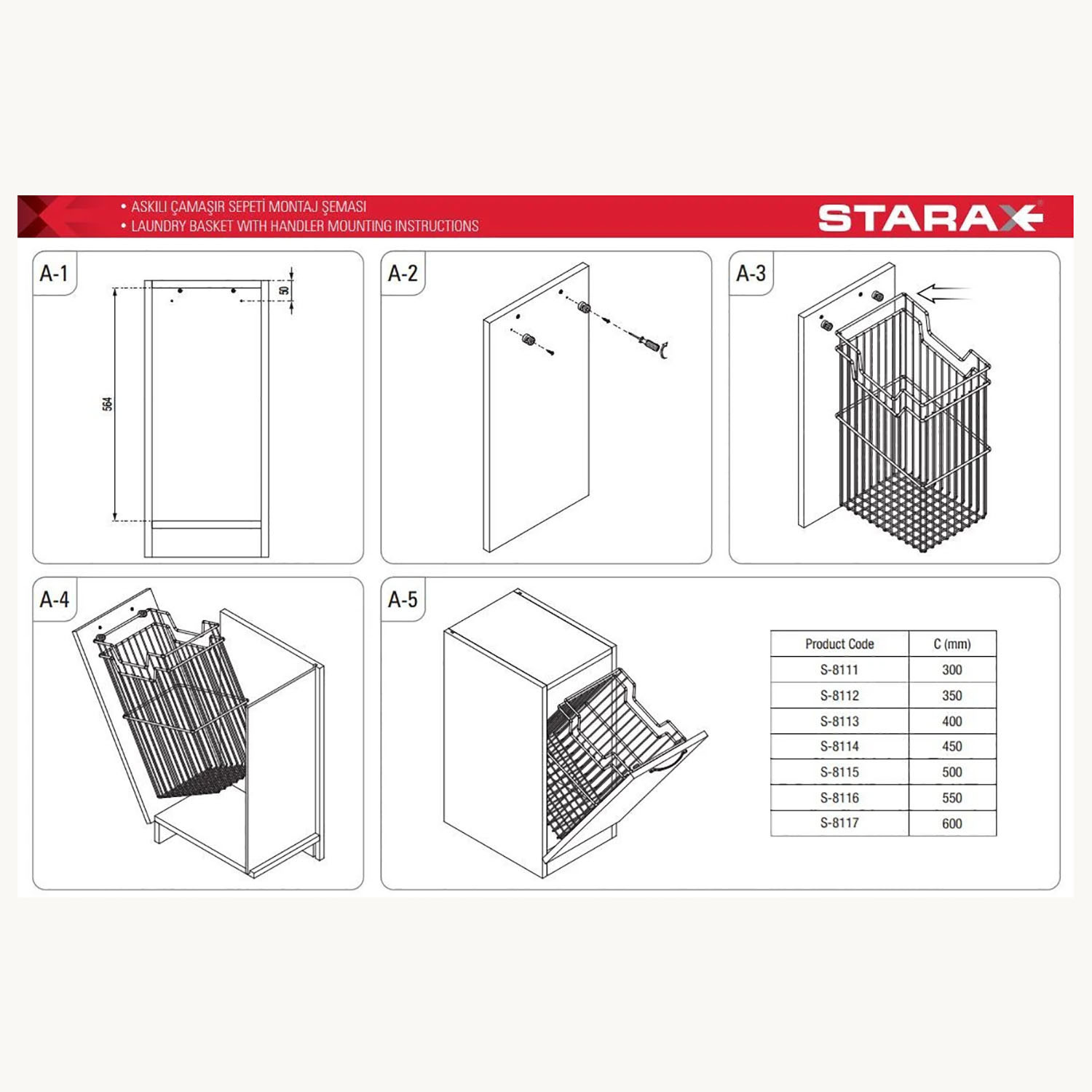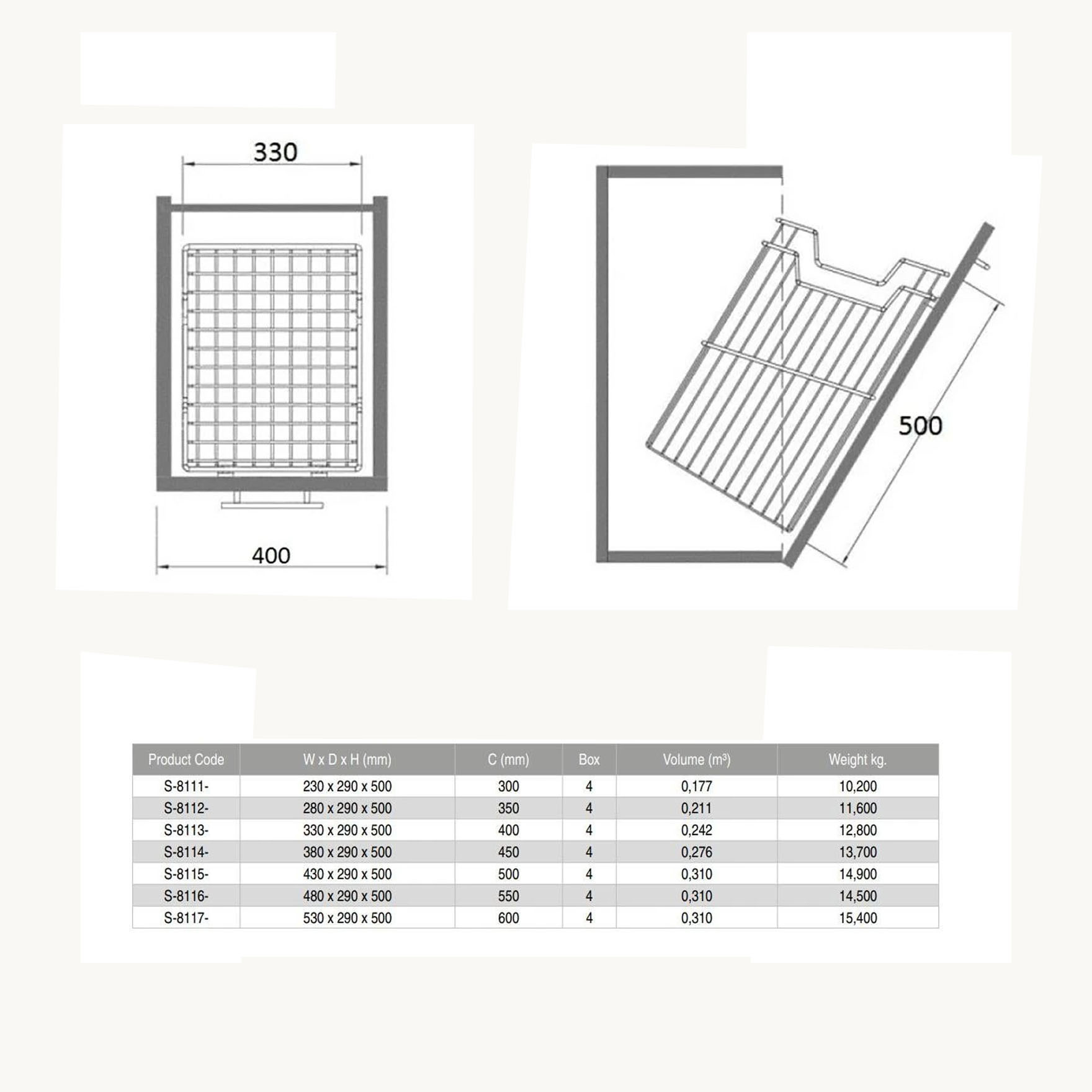 Корзина Starax для белья с держателем в корпус 400мм 330х290х500 хром, S-8113-C