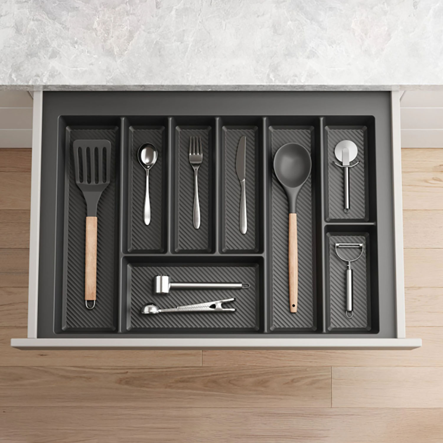Применяется для создания правильной организации внутреннего пространства. Лоток служит для удобного хранения столовых приборов. Предоставляет к ним быстрый доступ.