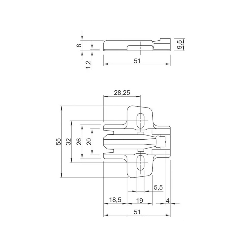 Винты для дерева с потайной головкой Ø 4,5 х 16 мм Межосевое расстояние 32 мм Регулировка по высоте за счёт овальных отверстий ± 3 мм Материал: сталь никелированная Дистанция D: 3,0 мм