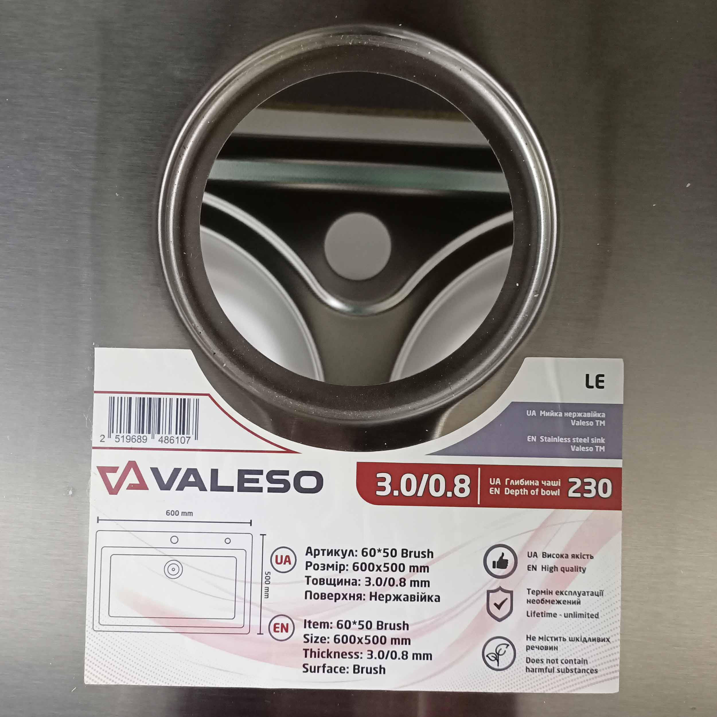 Мойка 60×50 врезная нержавейка Handmade Valeso
