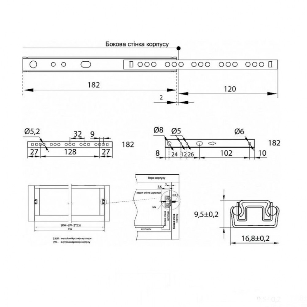 Страна производитель: Китай Тип направляющей: телескопическая врезная Тип выдвижения: частичное Длина L, мм: 182 Высота h, мм: 17 Толщина металла, мм: 1 Материал: металл Нагрузка, кг: 15 Цвет покрытия: цинк