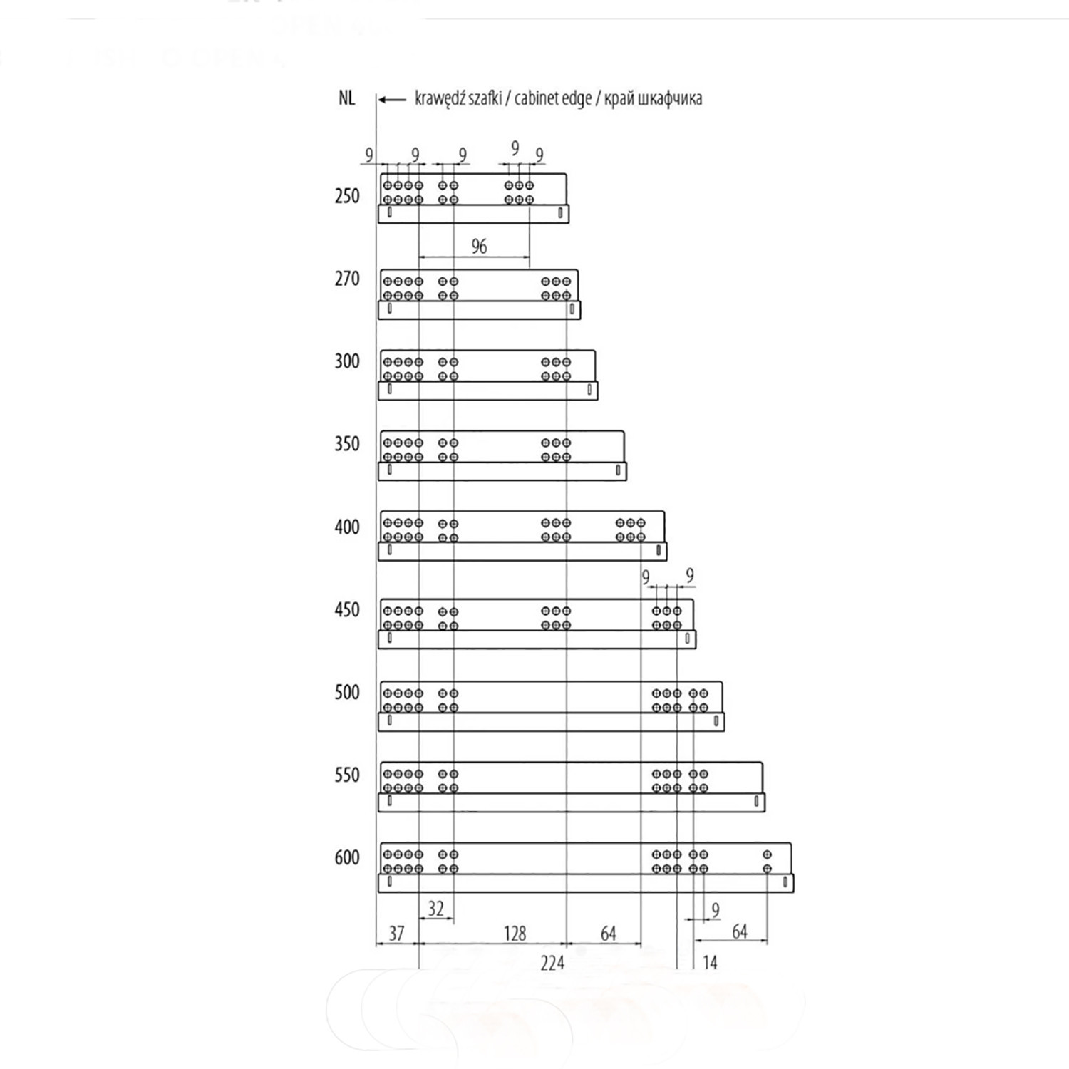 Направляющая скрытого монтажа GTV полного выдвижения Modern Slide L=550 mm 16-18 мм 3D