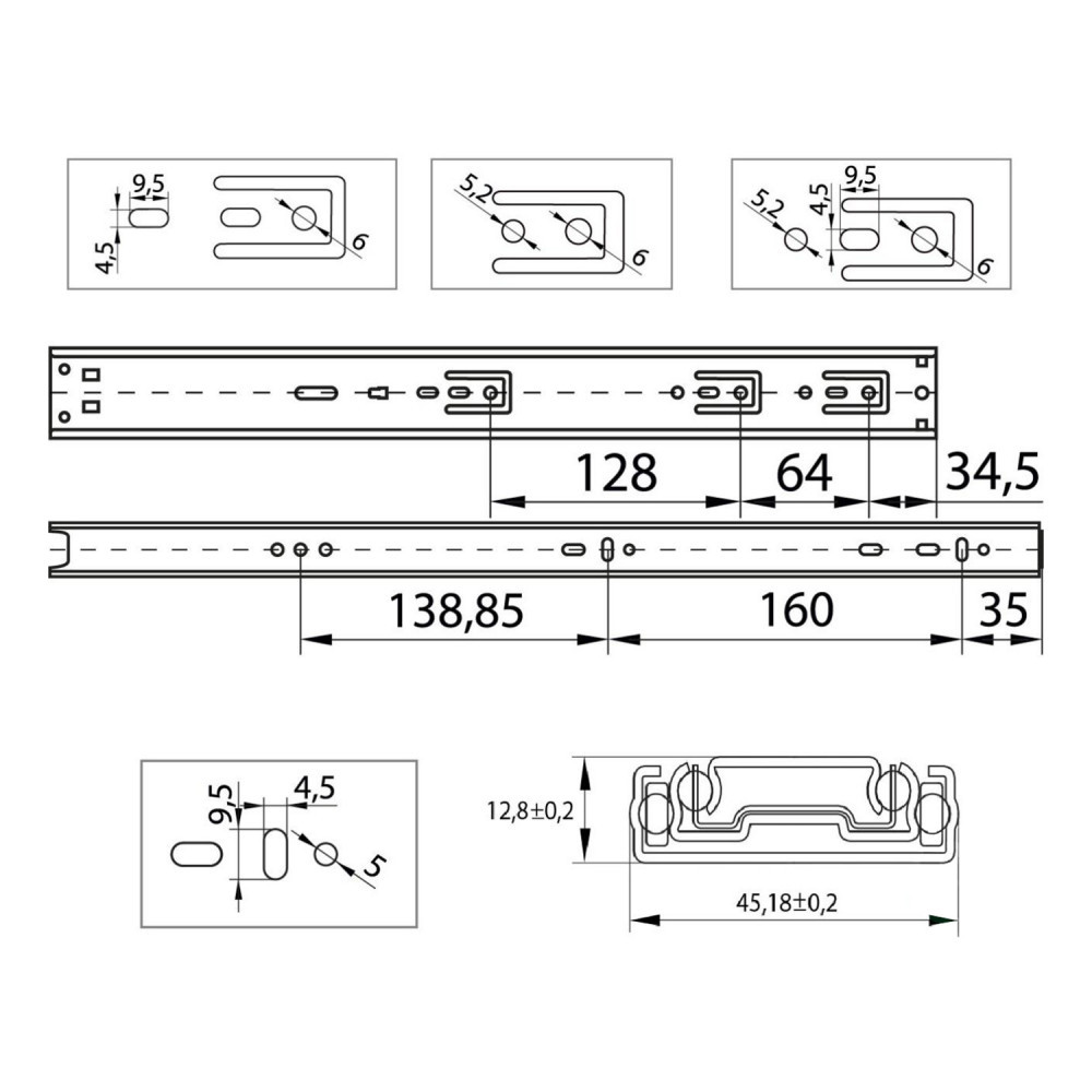 Направляющая телескопическая c плавным закрыванием L-450 Н-45мм ПремиумЛайн