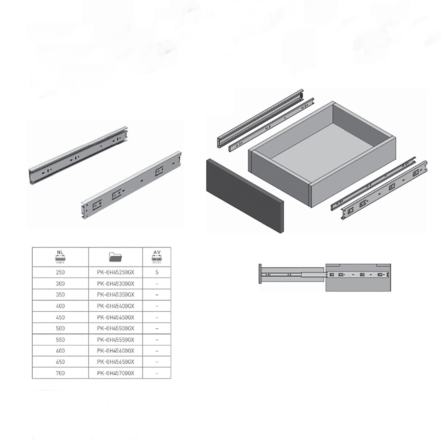 Высокая грузоподъемность. Удобный механизм позволяет легко устанавливать и снимать ящик. Возможность установки шариковых направляющих вместо роликовых без изменения размеров ящика.Легкое открытие даже при максимальном заполнении ящика.