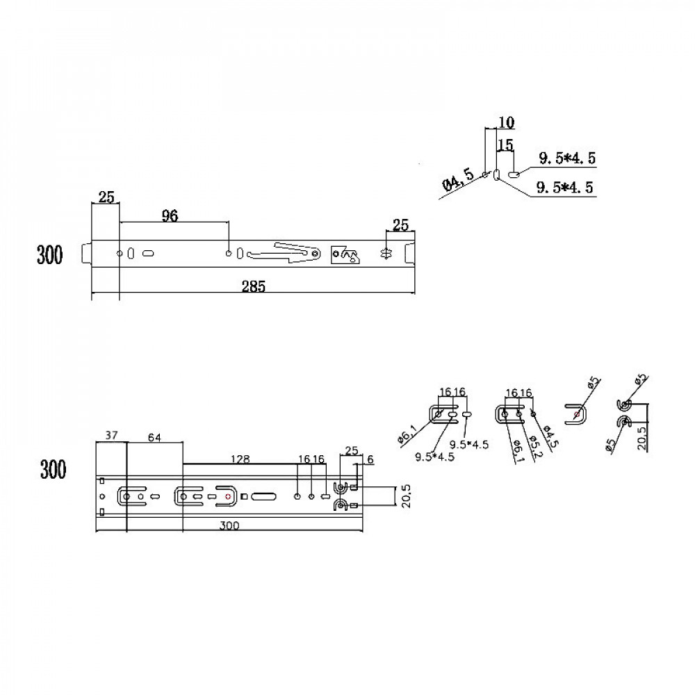 Страна производитель: Китай Тип направляющей: телескопическая Тип выдвижения: полного выдвижения Длина L, мм: 300 Высота h, мм: 45 Толщина металла, мм: 1,2 Материал: сталь Нагрузка, кг: 45 Цвет покрытия: никель