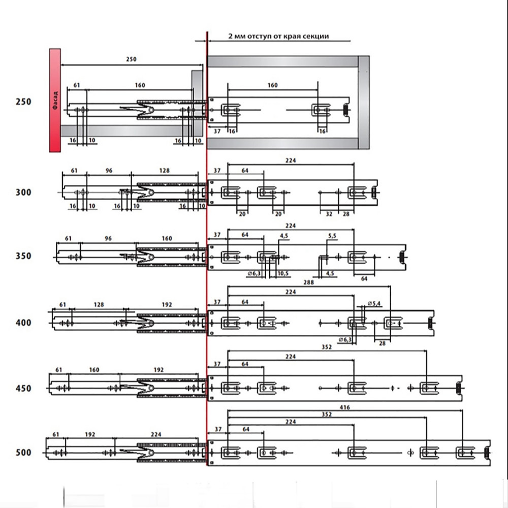 Материал - холоднокатная сталь Толщина металла - 1,2мм Номинальная нагрузка - 35кг Характеристики: -высокая грузоподъемность, -надежная фиксация ящиков, -удобный механизм снятия ящиков, -гарантированное количество выдвижений до 100000 циклов