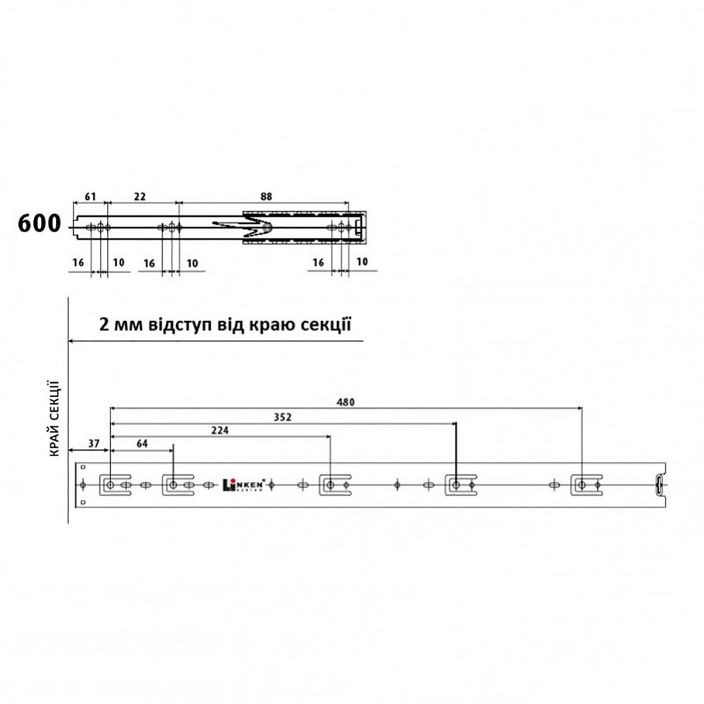 Направляющая телескопическая LinkenSystem 600×45 STRONG