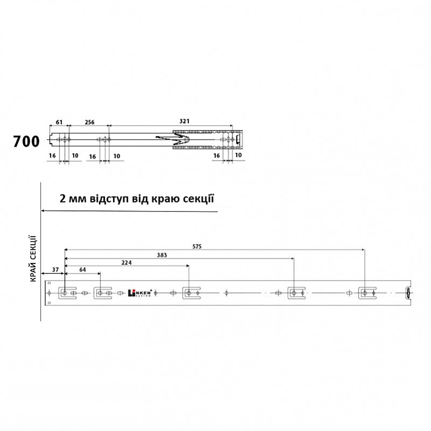 Направляющая телескопическая LinkenSystem 700×45 STRONG