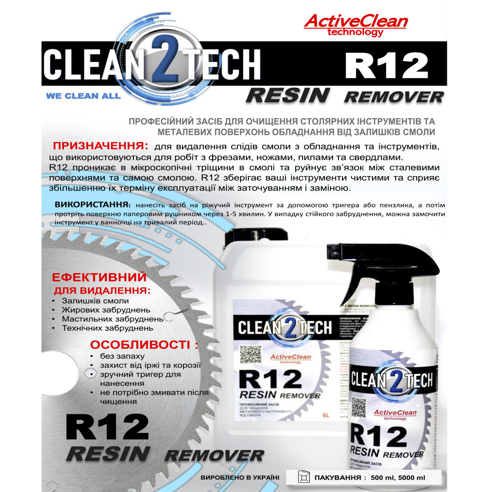 Очиститель мебельный CLEAN2TECH ACTIVECLEAN RESIN REMOVER R12 500мл