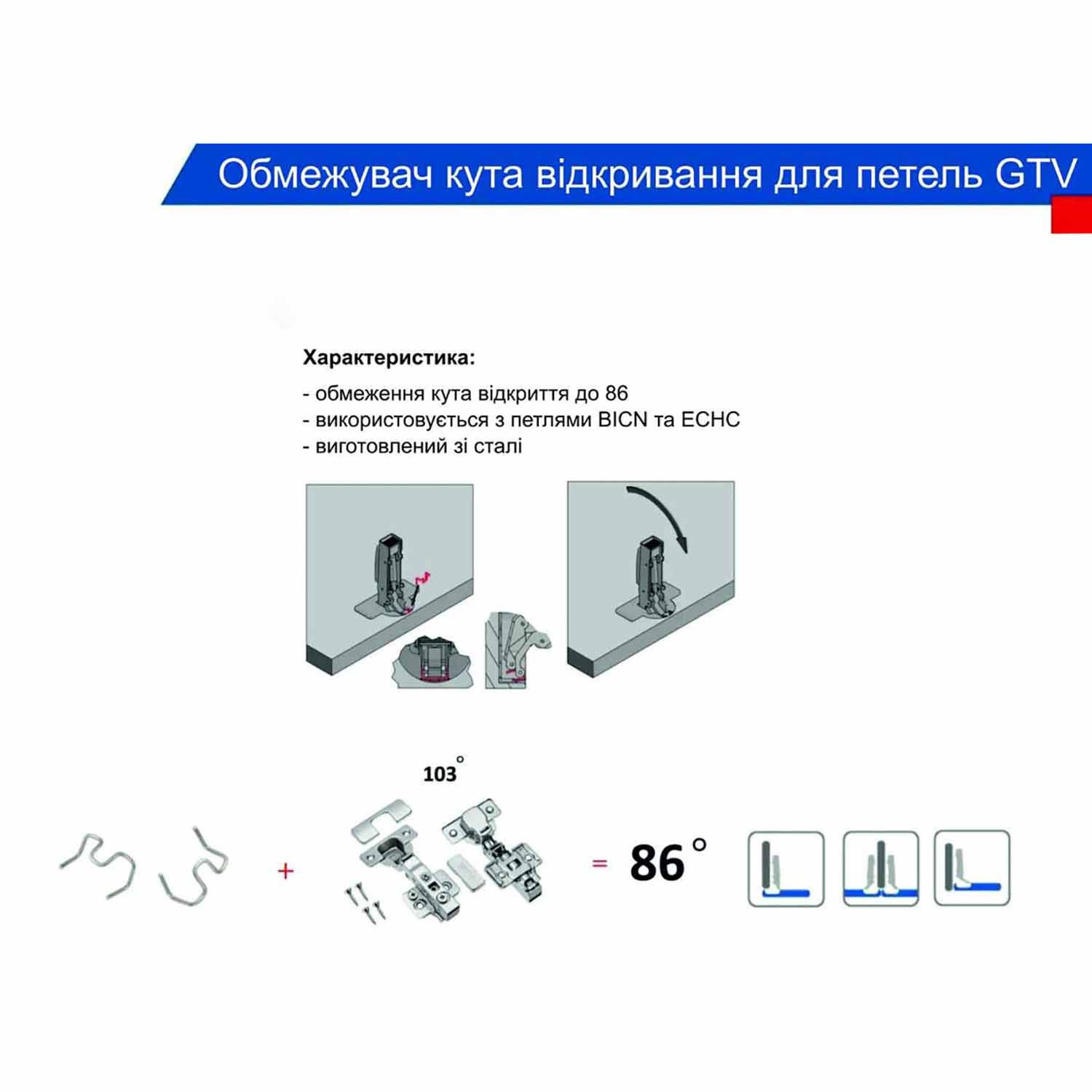 Ограничитель угла открывания петли GTV угол 86°