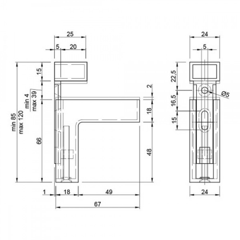 Полкодержатель для стеклянных и деревянных полок толщиной 5-23 мм.