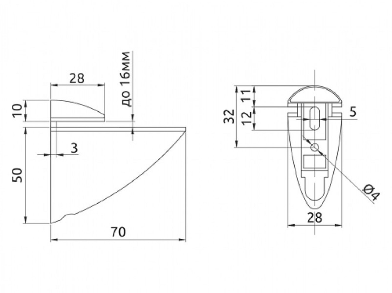 Предназначен для полок из стекла и ЛДСП толщиной до 35 мм с нижним зажимным винтом, что позволяет регулировать толщину вставляемой полки и прочно ее фиксировать. Выдерживает нагрузку от 20 до 40 кг на один полкодержатель (в зависимости от модели).