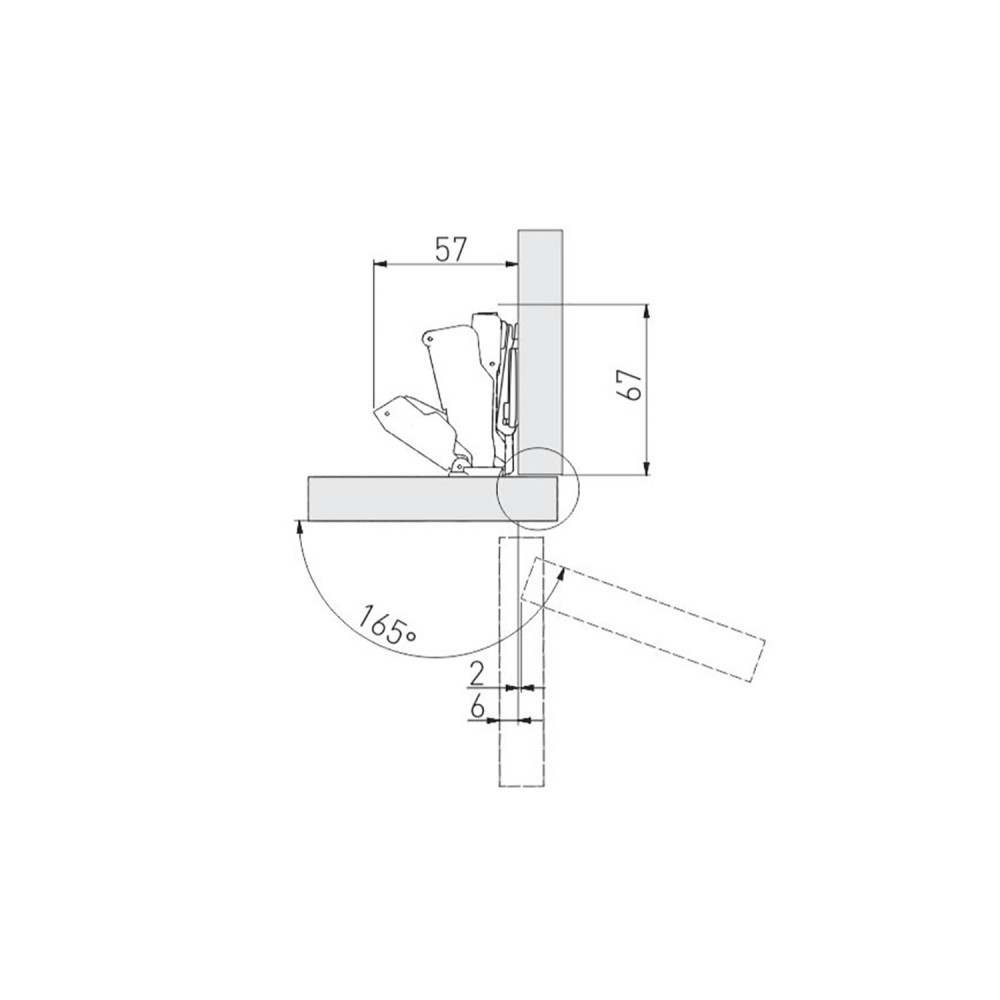 | Угол открывания, °: | 165 |