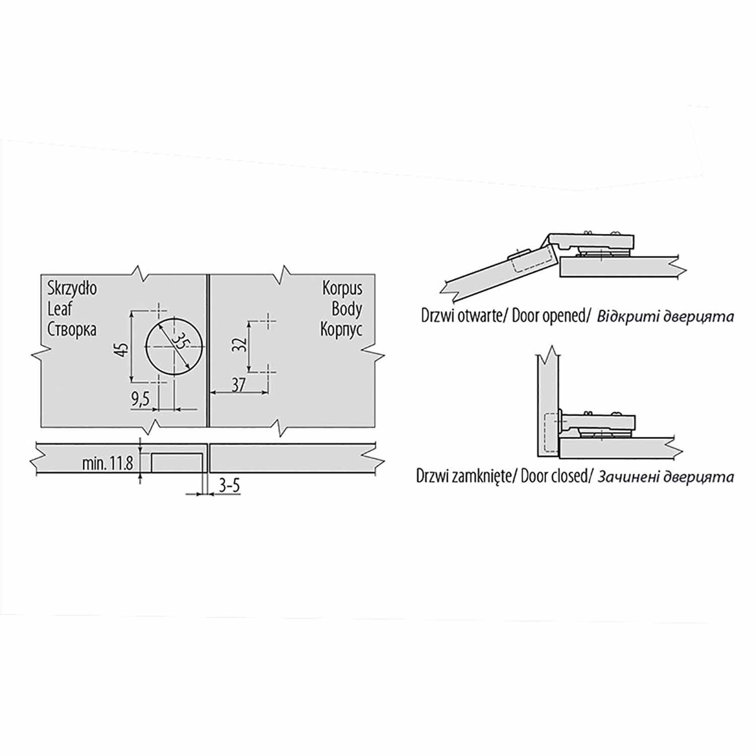При использовании этой петли петельная часть створки в закрытом состоянии почти полностью накладывается на торец соседней стенки корпуса мебели. Доводчик позволяет плавно и бесшумно закрыть дверку шкафа.