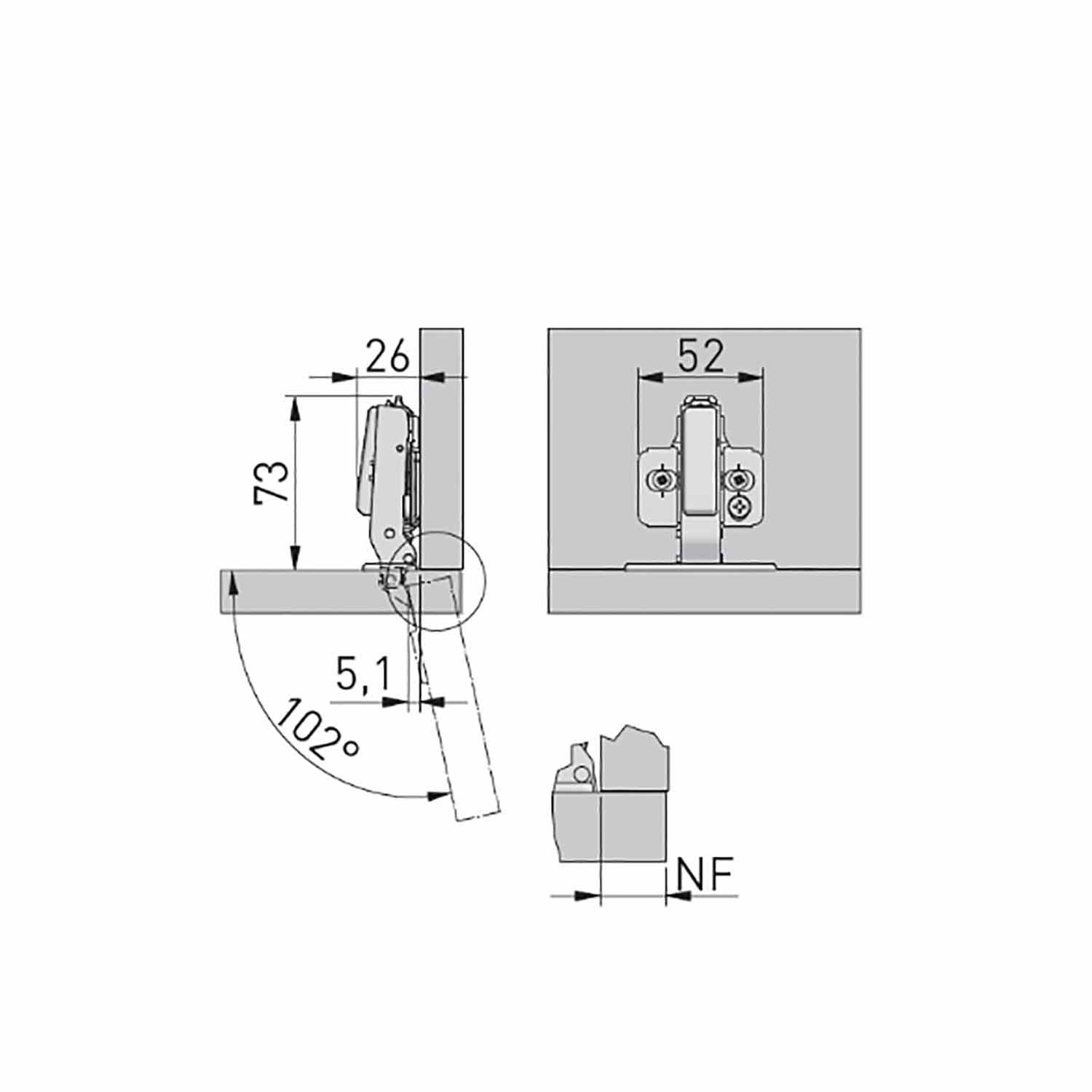 | Угол открывания, °: | 102 |