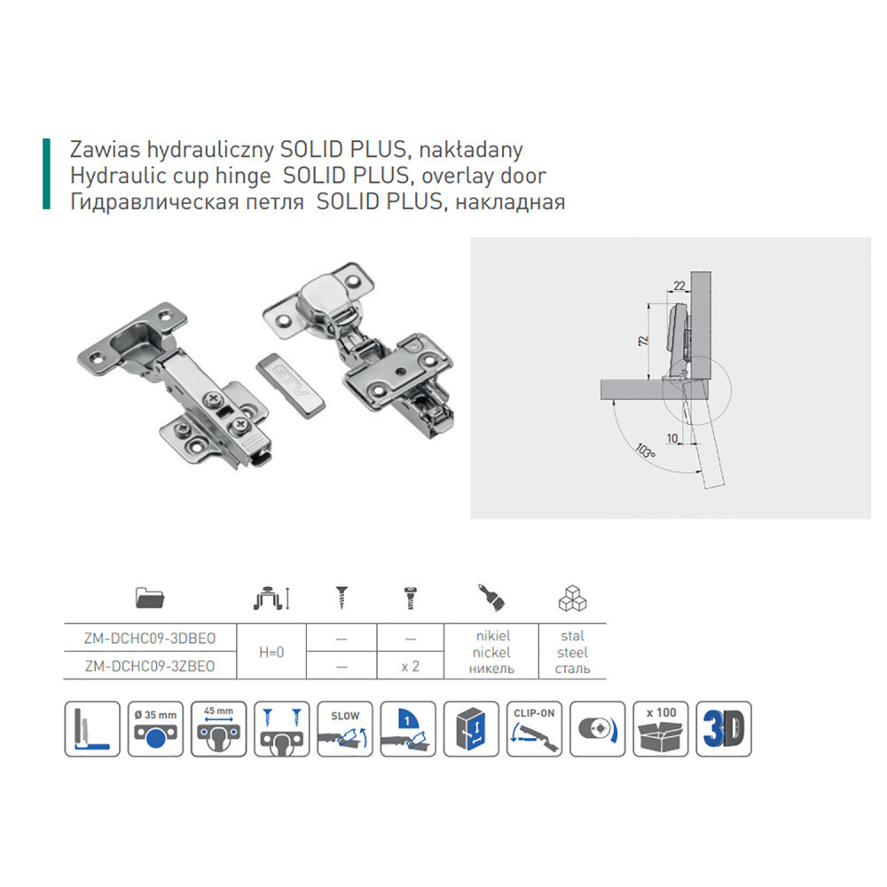 Петля GTV накладная с доводчиком 3D Clip-on H=0 Solid Plus