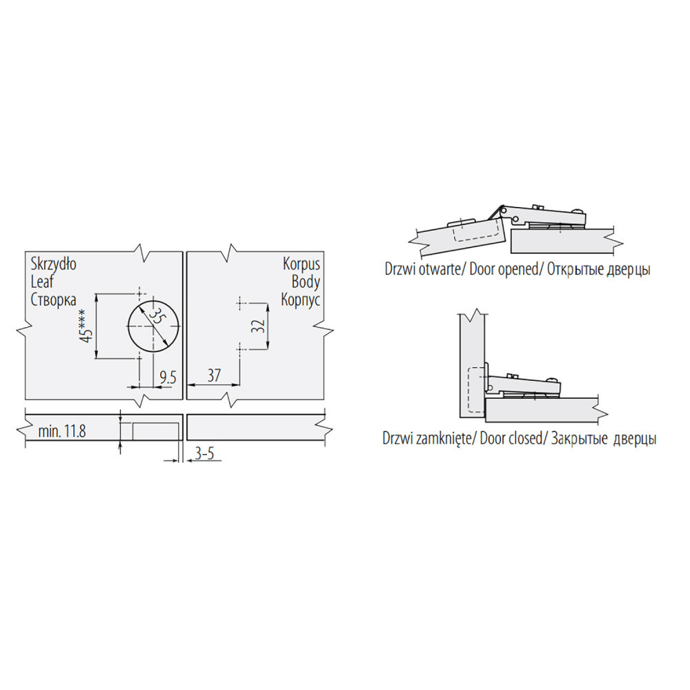 | Вариант открывания/закрывания: | Без доводчика |