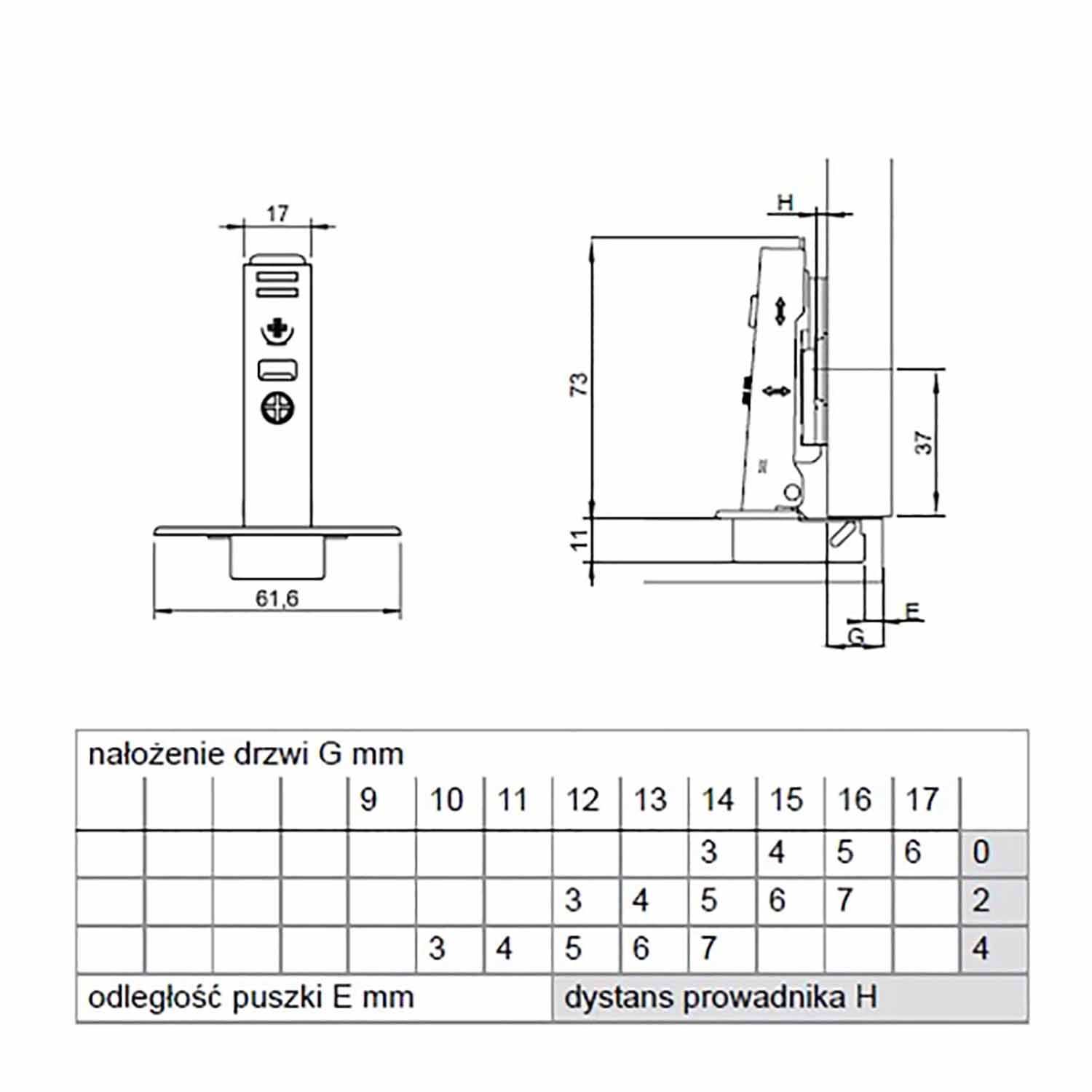 Петля Hafele Metalla SM 110° без пружины накладная сталь никелированный 45 х 9.5 под шуруп H=0