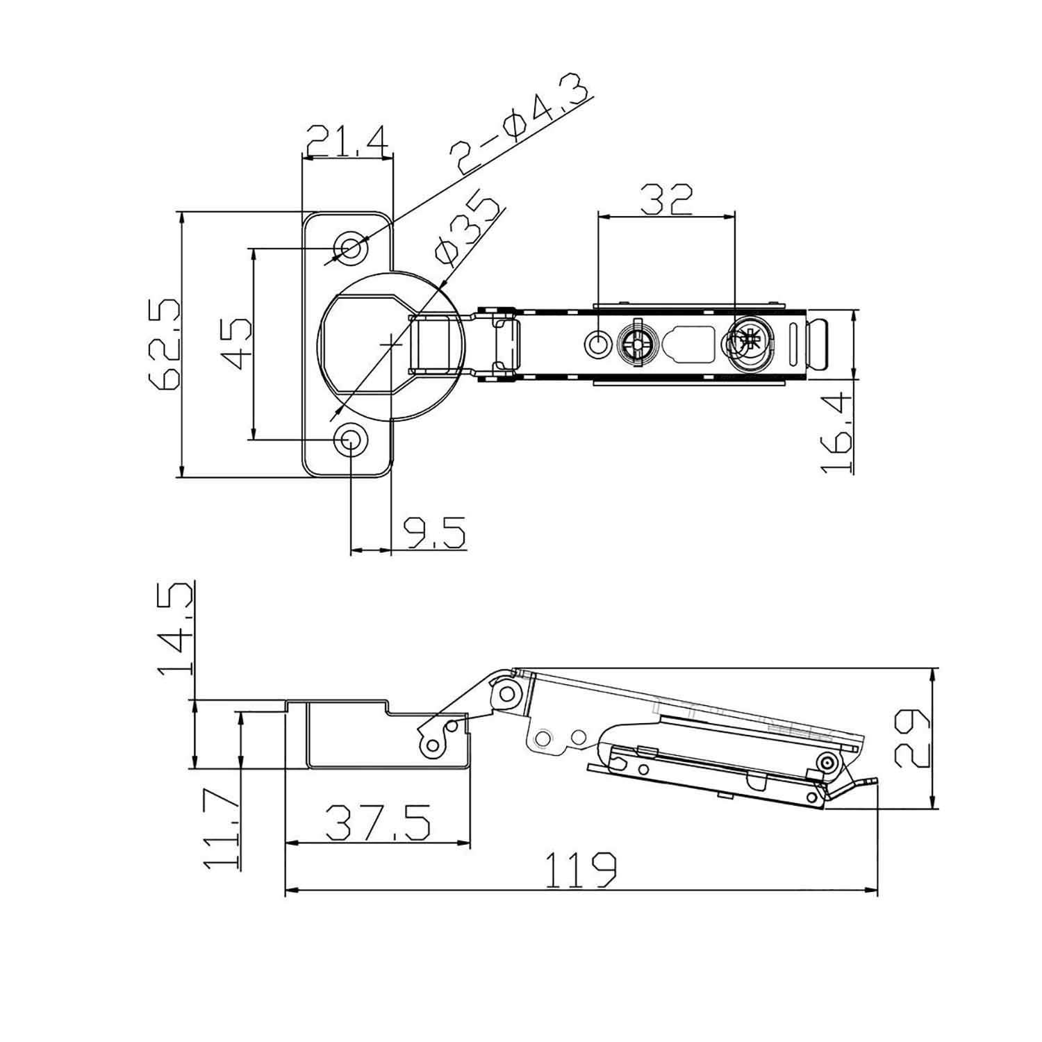 Петля PL накладная со скрытой планкой с амортизатором 3D Clip On Графит