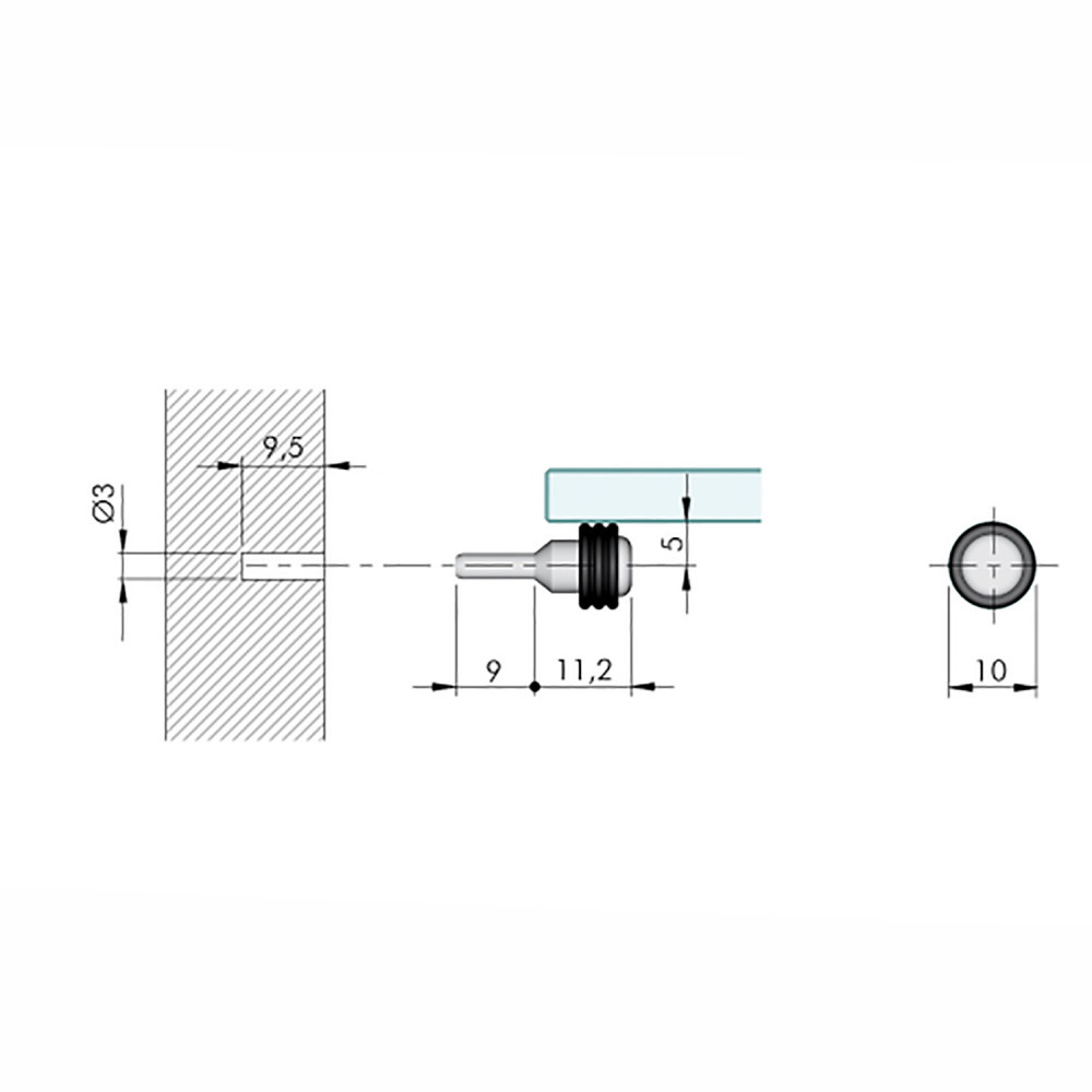 Полкодержатель для стекляных и зеркальных полок. Имеет прорезиненную накладку, которая предотвращает повреждение полки и препятствует скольжению. Монтаж производится путем всверливания в боковину конструкции, врезной d – 5 мм.