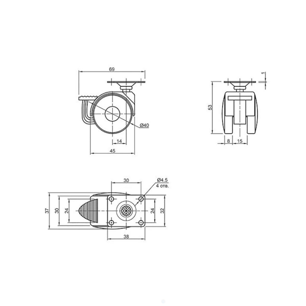 Ролик пластиковый с площадкой Ø40 с тормозом