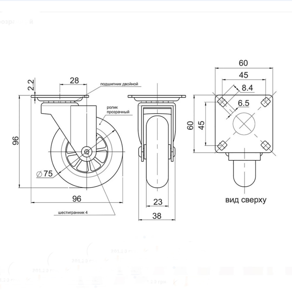 Ролик прозрачный с площадкой Ø75 SM