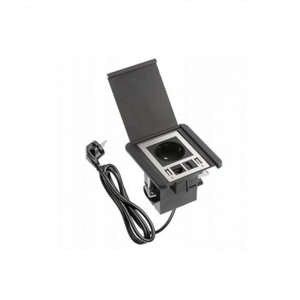 Удлинитель GTV FLIP, 1×SCHUKO, 2×USB, 1×LAN, кабель с вилкой 1,5м, Черный