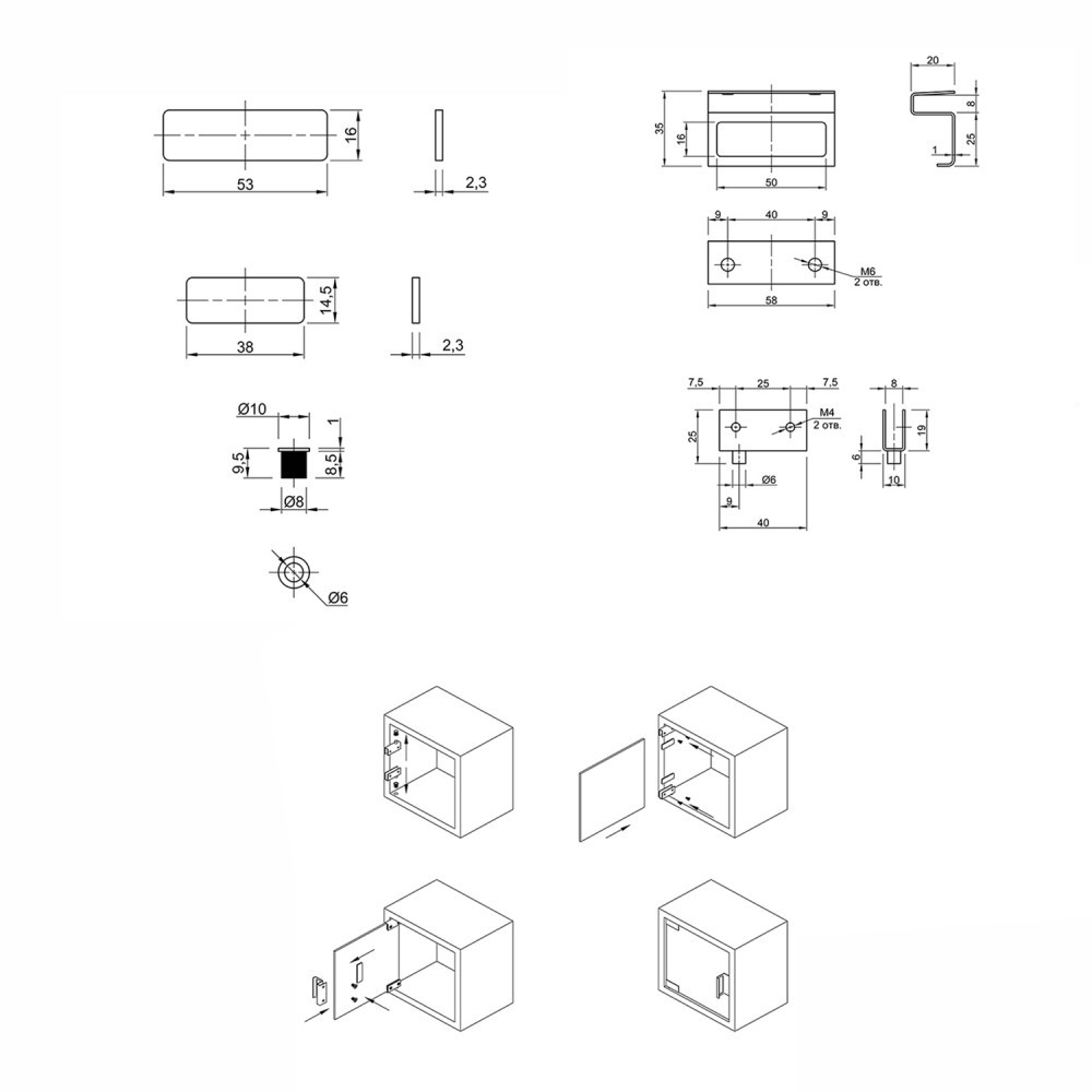 Набор для стекла из 2 петель без доводчика.