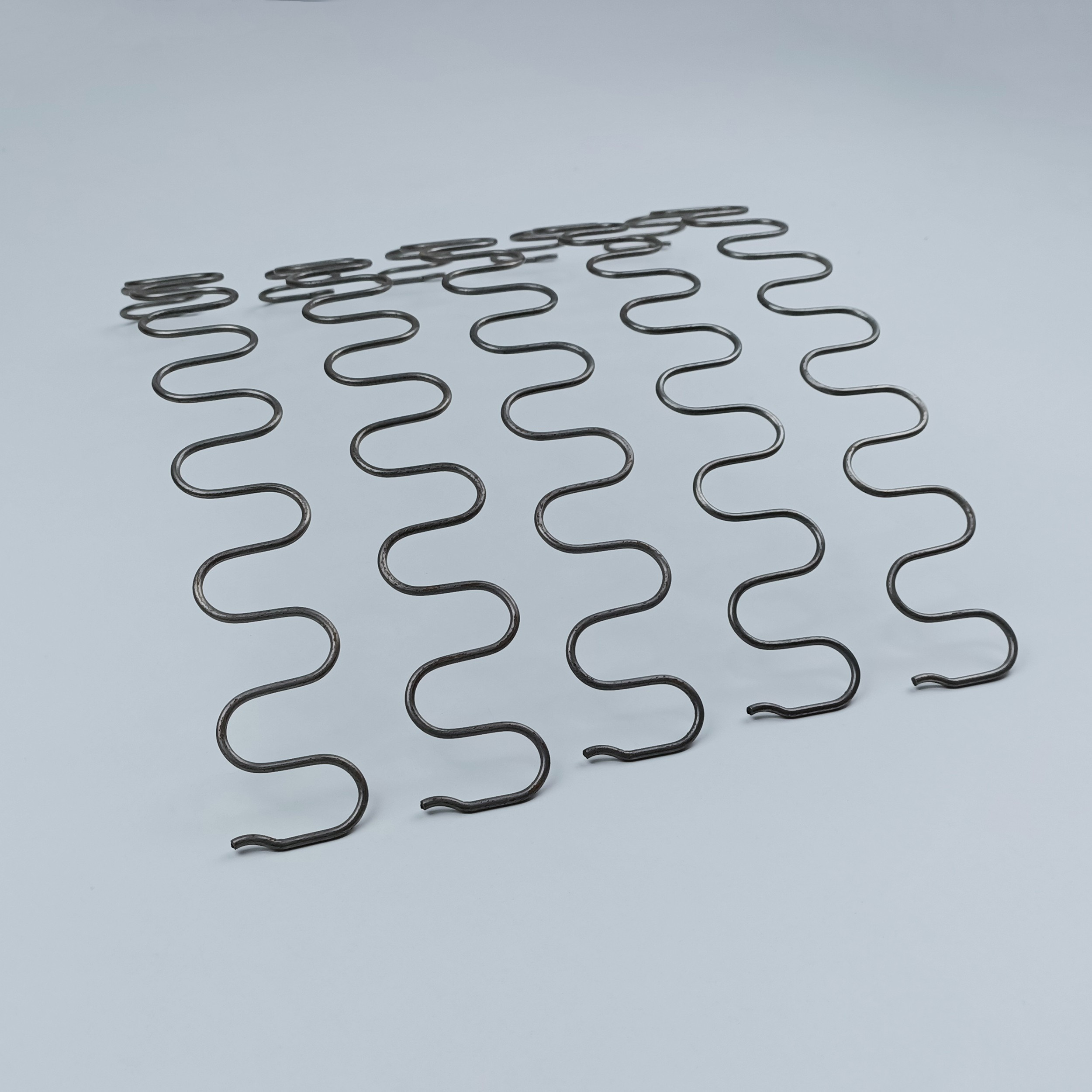 Зигзагообразные пружины "змейка", работающие на растяжение, применяют в эластичных основаниях мягких елементов. Основное преимущество использования пружин "Змейка" - ровность основания дивана и его безшумность при эксплаутации.